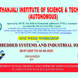 The ECE Department of Geetanjali Institute of Science and Technology, a leading engineering college in Nellore, in partnership with the Indian Society of Technical Education (ISTE), organized a week-long training program on “Embedded Systems and Industrial IoT” for the benefit of second year ECE students, said the college’s Director Dr. G. Subbarao and Vice Principal Dr. K. Shravan Kumar on 28/07/2025 at CV Raman Hall.