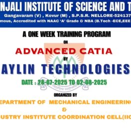 The Department of Mechanical Engineering organized a one week workshop on “Advanced CATIA” with the support of Aylin Technologies Private limited from 28-07-2025 to 02-08-2025 in Geethanjali Institute of Science and Technology.